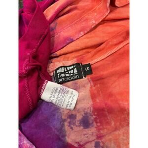 Step back into the iconic era with this rare, vintage 90s/Y2K Art of Cloth top! This unique piece features an asymmetrical design and a mesmerizing hand-dyed pattern that screams grunge aesthetic. Made with love in the USA, this shirt is a true testament to the era's artistic expression.