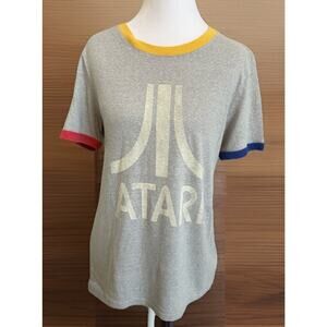 Y2K ATARI Shirt Heather Gray RETRO Video Game 80s Tee T-Shirt Red Yellow Sz L