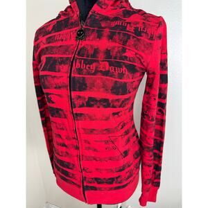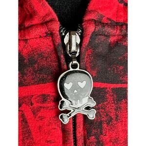 Y2K Abbey Dawn Avril Lavigne Black Red Skull Zip Up Hoodie Large