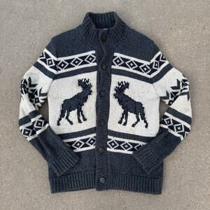 Y2K Abercrombie & Fitch Fair Isle Cabin Cardigan Blue Moose Wool Sweater Sherpa
