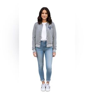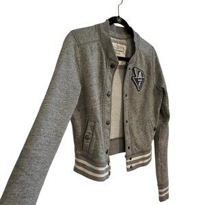 Y2K Abercrombie & Fitch Grey Varsity Bomber Jacket Patchwork Logo Size: Medium