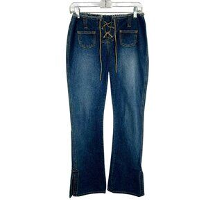 Y2K Abercrombie & Fitch Lace Up Boot Cut Jeans Women 30 Blue Low Rise Britney