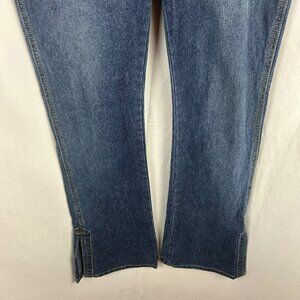 • Authentic Y2K Style, Raw Cut Off Waist, Lace Up Closure, 2 Mini Front Pockets, Low Rise, Dark Wash, Bootcut Flare Hem with Side Slit, 100% Cotton, Made in the USA.