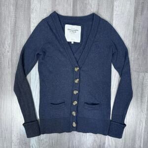 Y2K Abercrombie & Fitch Navy Cardigan Sweater Logo Moose Long Sleeve, Bella Elena, Size Medium, Good Condition light piling