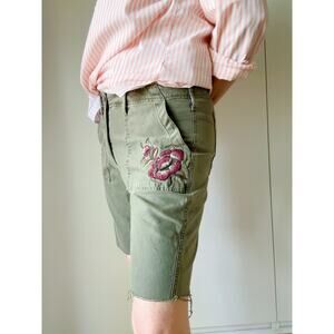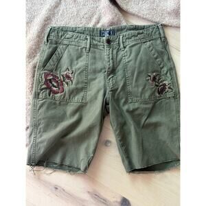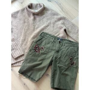 Y2K Abercrombie & Fitch Short Cut off Green Embroidery Detail Military Look Size 8