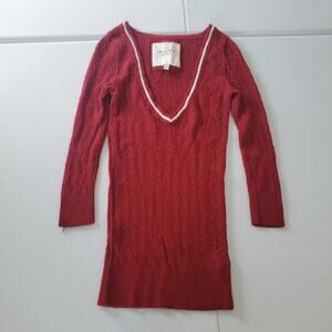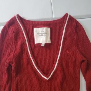 Y2K Abercrombie & Fitch Sweater Womens Large Red Cable Knit Deep V-Neck Long
