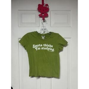 Y2K Abercrombie & fitch Graphic Baby Tee Sm Green Santa Thinks I’m Studying Christmas holiday