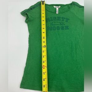 Y2K Abercrombie and Fitch Green Mighty Moose Baby Tee Size Medium. Please note measurements. This is very tiny. I would say fits more like an XS. Smoke free home!