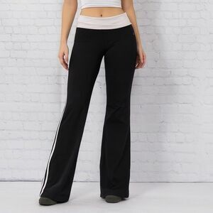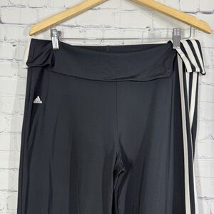 Y2K Adidas Climate Leggings Women XL Black Fold Over Waist Flare Yoga Pants 2006