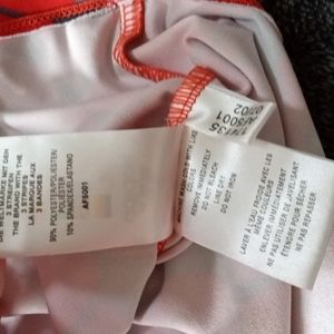 Gray and red floral workout top dated 7/02. Small side slits at hem.