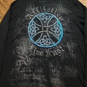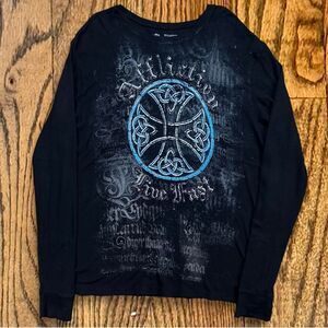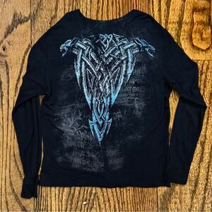 Y2K Affliction Alt Grunge Tribal Style Thermal Long Sleeve Shirt