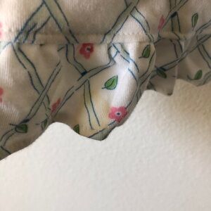 Size 7 two piece pajama set with floral design. Play condition - there are a few spots on the fabric I haven't tried to remove (pictured). 100% cotton. Top does not have a tag. Bottoms show size 7.