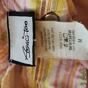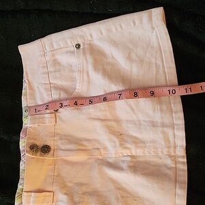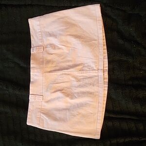 Pre-loved pale baby pink mini skirt. Zip up mini skirt with double buttons and wide belt buckle loops. All measurements are in photos. Size medium. Agaci Too.