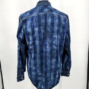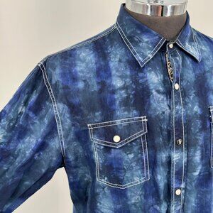 Y2K Age of Wisdom 100% Cotton Ice Dyed Pearl Snap Front Shirt Blues XXL