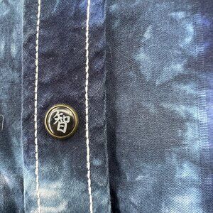Age of Wisdom brand was founded in 2010 and ceased production around 2015/16. This shirt is a fabulous example of what they did best. Gorgeous ice dyed 100% cotton snap front Western style shirt.