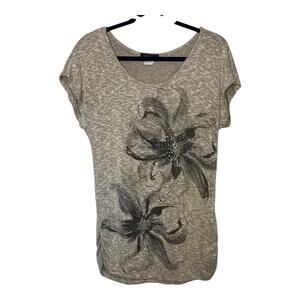 Y2K Agenda Top Womens L Floral Rhinestone Embellished Heather Beige Ruched Retro