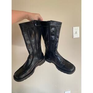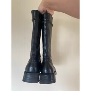 Y2K Aldo Italy black leather below knee winter boots lined zip platform 8.5/39
