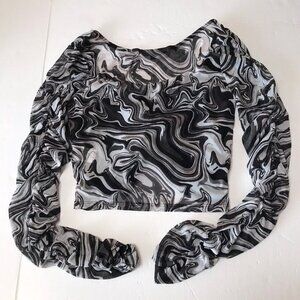 Y2K Almost Famous Top Sheer Mesh Psychedelic Swirls Cropped