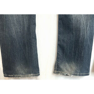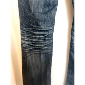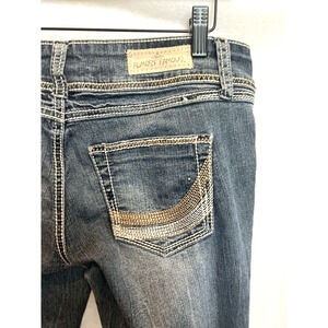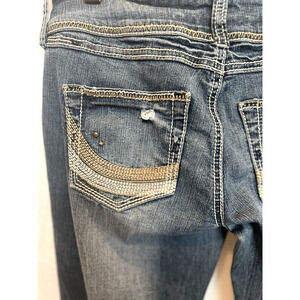 Y2K Almost Famous Womens Low Rise Boot Cut Jeans Size 9 Distressed Whiskered