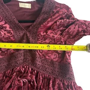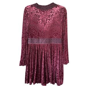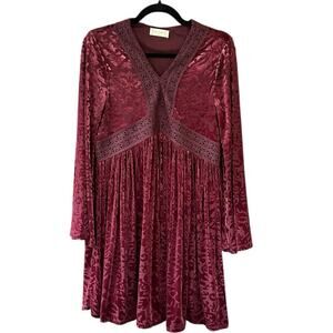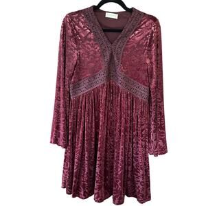 Y2K Altar'd State Dress M Burgundy Velvet Burnout Bell Sleeve Whimsigoth Fairy