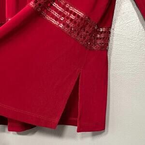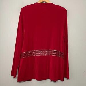 Y2K Amanda Slinky Stretch Cardigan Size Medium Holiday Red Sequin Crochet Party