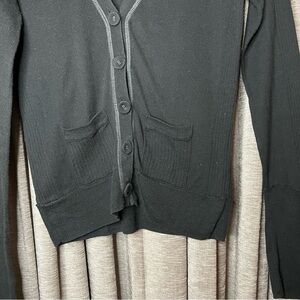 Y2K American Eagle Outfitters black v neck lightweight cardigan. Pockets on front and covered buttons. Material as shown in photos. Some pilling on sweater. Size medium.