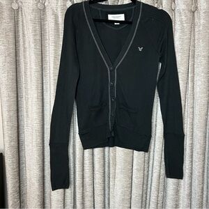 Y2K American Eagle Black V Neck Lightweight Cardigan Size Medium
