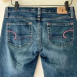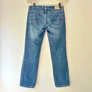 Y2K American Eagle Limited Blue Issue Cropped Jeans Women’s 2 Reg Pink Stitch