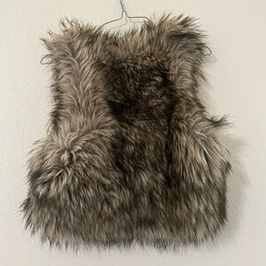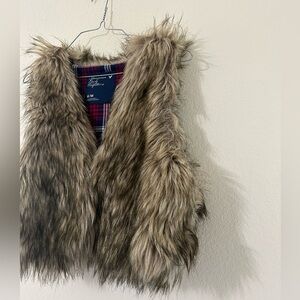 Stylish faux fur vest with a cozy plaid lining. Perfect for layering.