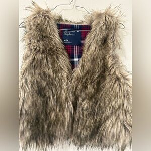 Y2K American Eagle Outfitters Faux Fur Vest Plaid Lined Red/brown Women's Size M
