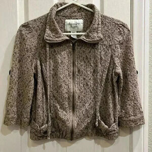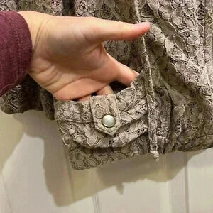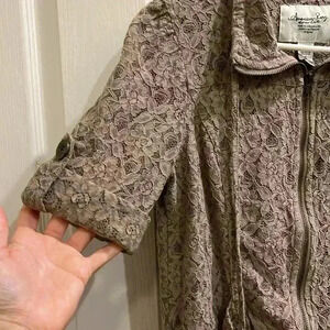 Y2K American Rag Floral Lace Sheer Bomber Jacket Roll Tab Sheer Sz Small