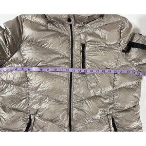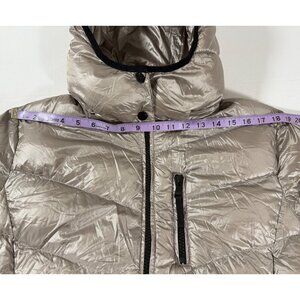 Y2K Andrew Marc XXL Metallic Hooded Down Puffer Coat 650 Fill Taupe Minimalist