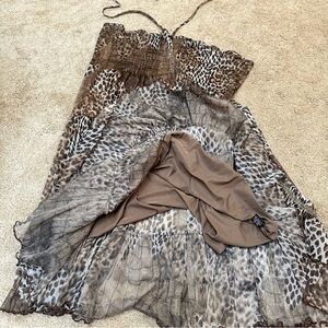 Y2K animal leopard cheetah print convertible maxi midi skirt / halter dress. Can be worn both ways.