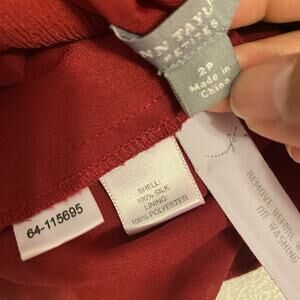 This Y2K Ann Taylor 100% Silk MiniDress in dark red is a vintage piece with ruffle accents and a boat neckline. The knee-length dress features a zip closure, strappy sleeves, and is designed in a fit & flare, A-Line style. It is perfect for various occasions such as weddings, parties, formal events, and business meetings. The dress is lined and made of chiffon fabric, making it ideal for summer and spring seasons. With a hint of fairy character and themed around hippie, grunge, bohemian, 90s, Halloween, and Gothic styles, this dress is a unique and stylish choice for women who appreciate vintage fashion.
