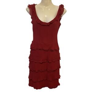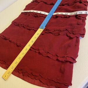 Y2K Ann Taylor 100% Silk MiniDress Ruffles Sz 2P Fairy Vamp 90s Vintage Dark Red