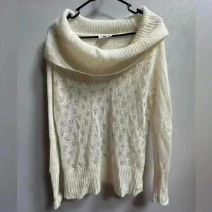 Y2K Ann Taylor Loft Wool Blend Beaded Cowl Sweater | Cream & Silver | Size L