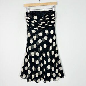 Y2K Ann Taylor Polka Dot Strapless Silk Dress Black Size 2 Petite Women's