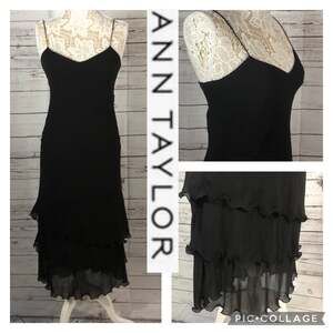 Y2K Ann Taylor Silk tiered Formal Black Spaghetti strap Dress size 4
