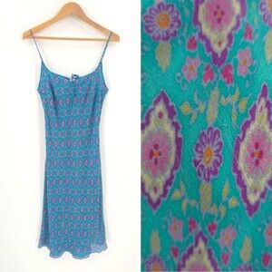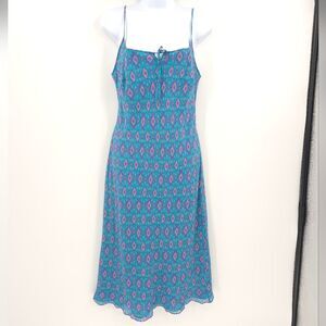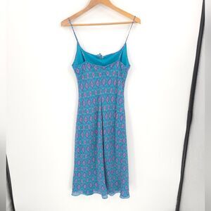 Y2K Ann Taylor Womens 100% Silk Slip Dress Size 10 Turquoise Spaghetti Strap