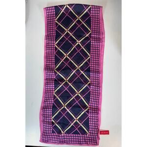 Y2K Anne Klein Preppy Bubble Gum Pink Navy Blue 100% Silk Scarf Argyle Girly