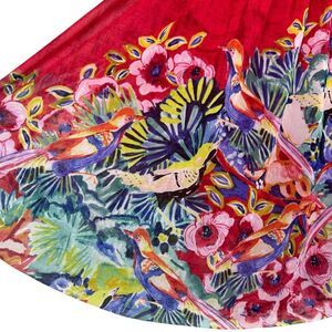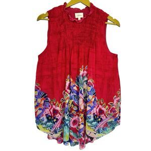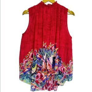 Y2K Anthropologie Floral Birds Flowy Mesh Tunic Smocked Top Size M Ruffle Artsy