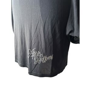 Rare vintage Y2K Apple Bottoms dress. Black long sleeve turtleneck style with a button closure at the back of the neck and an open back detail. Features the Apple Bottoms logo at the bottom of the opening and “Apple Bottoms” spelled out in rhinestones on the front.