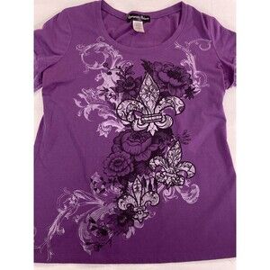 Y2K Appropriate Behavior Top L Purple Floral Long Sleeve Grunge Retro Vintage