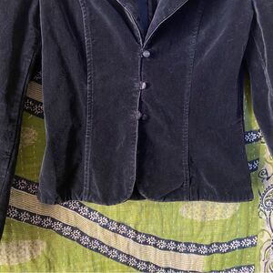 ▪️Style: Notched collar neckline, 3 cloth-covered button closure, cloth-covered button cuffs, structured silhouette, no pockets, decent stretch