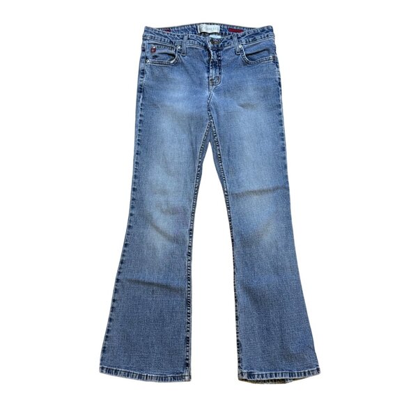 Y2K Arizona Flare Leg Stretch Jeans 7 Short Blue Denim Mid Rise