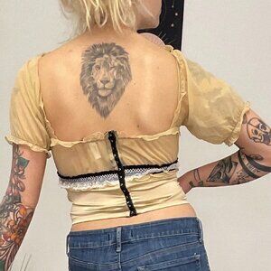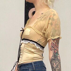 Y2K Arsenica Square Neck Ruffle Trim Corset Top Short Sleeve Size 2 Tan