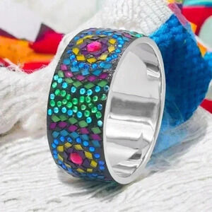 Handmade bangle bracelet, colorful mosaic bracelet, crystal bangle, rhinestone bracelet, unique handmade jewelry, boho chic bracelet, festival jewelry, statement bangle, one-of-a-kind jewelry, artisanal bracelet, colorful jewelry, mosaic jewelry, rhinestone jewelry, bohemian bracelet, handmade bracelet, fashion bracelet, crystal jewelry, trendy jewelry, mosaic bangle, bold bracelet, multicolor bangle, boho accessories, handmade bangle, rhinestone bangle, crystal bangle bracelet, unique bracelet, artisan bangle, vibrant jewelry, handmade statement bracelet
