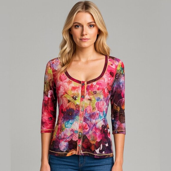 Stand out in this artsy Y2K-inspired floral blouse — bold, colorful, and full of personality. Perfect for anyone who loves statement fashion with a whimsygoth-meets-preppy twist.
