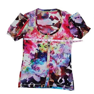 Y2K Artsy Floral Button Down Blouse Medium Boho Whimsygoth Preppy Red Black Top