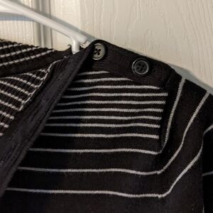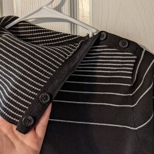 Asymmetrical, Sweater, Pullover, Striped, Stripes, Stripe, Black, White, Comfy, Soft, Button Details, Unique Neckline, Cowl Neck, Cowl, Willow Bay, Cotton, Rayon, Size Medium, Size 10-12, Size M, Women, Women's, Woman, Fall, Winter, Warm, Cold Weather, Unique, Cozy, Comfortable, Buttons, Details, Embellished, Stripey, B&W, Black & White, Knit, Knitwear